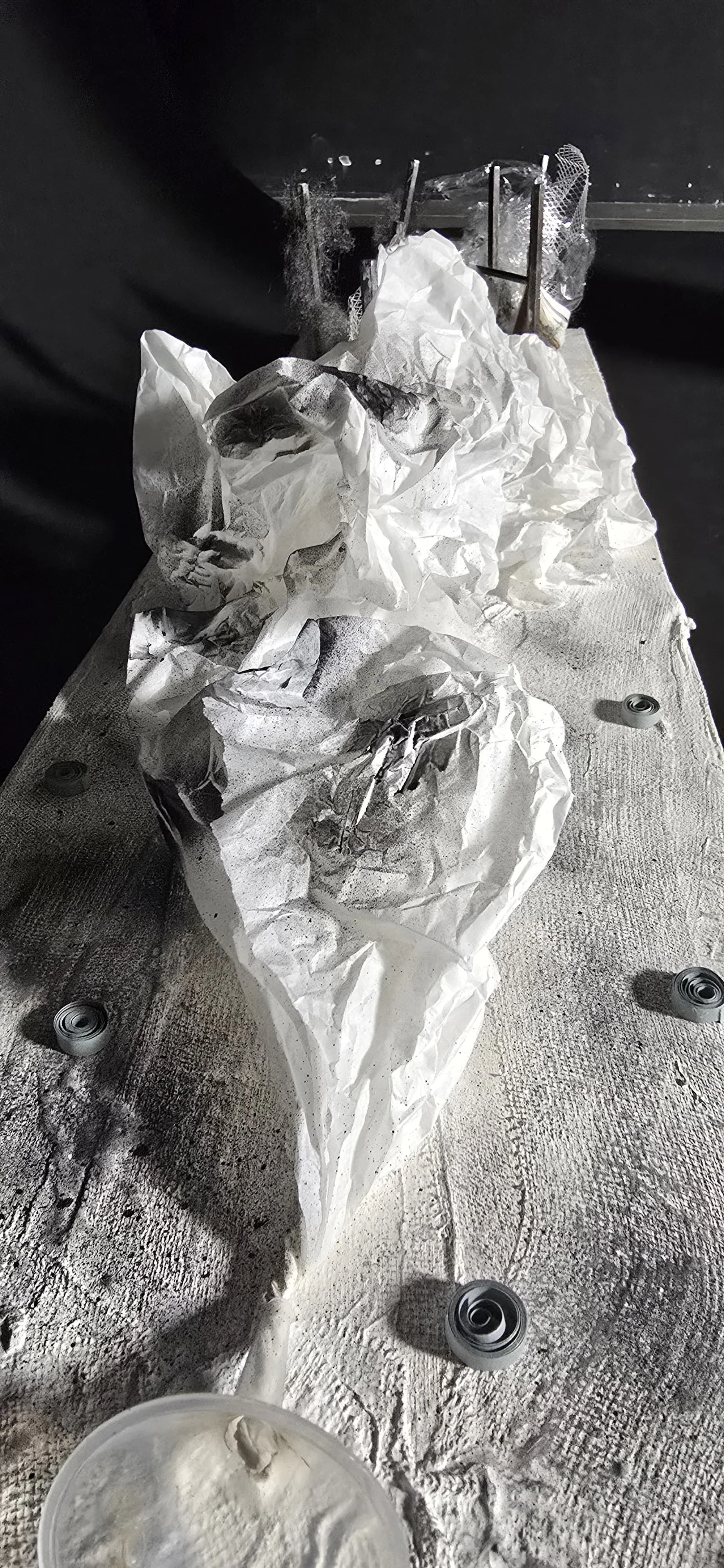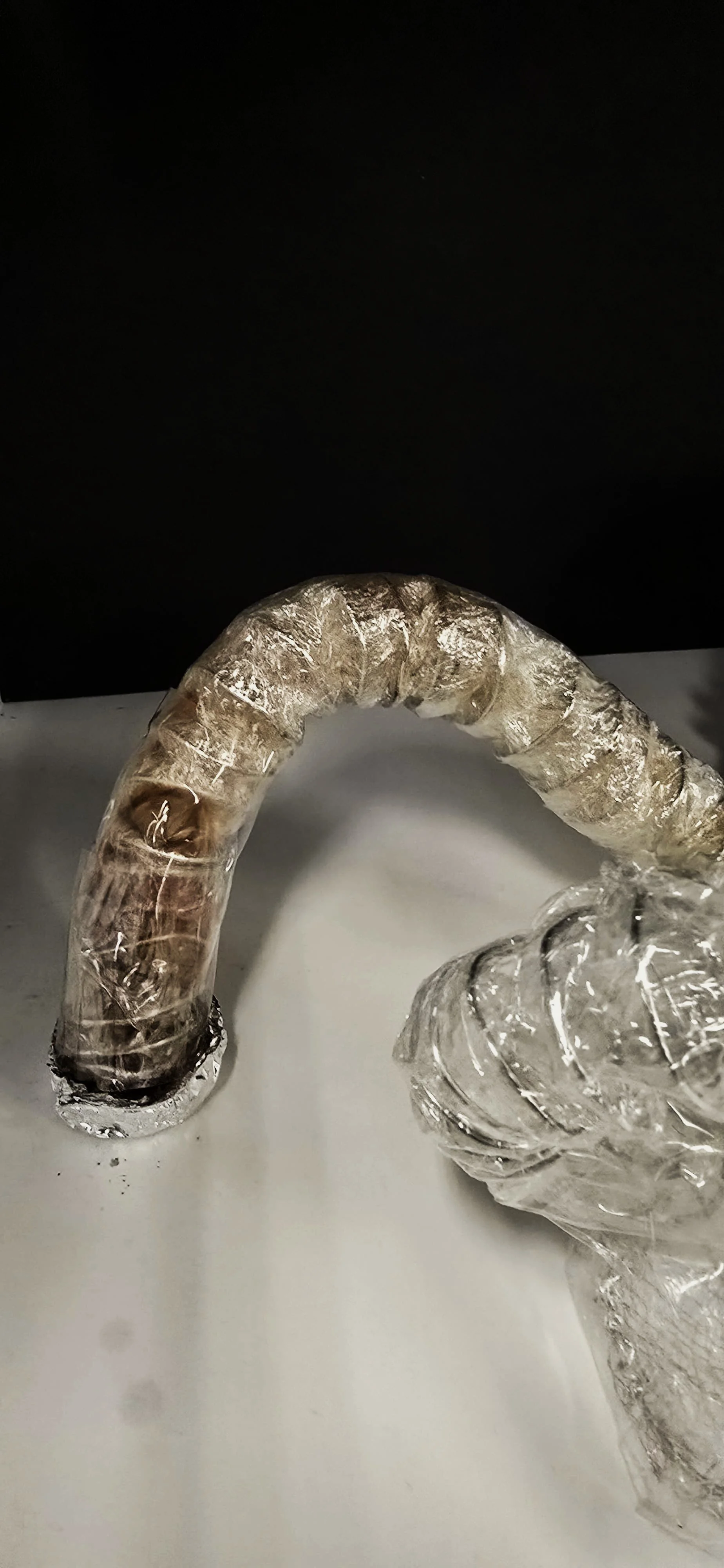 To gain a deeper understanding of the airflow mechanism, a performative model was constructed. In this setup, a candle was placed at the center to generate heat, causing the surrounding air to expand and increase in pressure. This pressure differential drove the heated air outward through the designated openings. Incense was positioned at the mouth of the coil-like structures to visualize the airflow patterns. These coiled forms functioned as air channels, enabling the observation and analysis of the speed and direction of air movement through the system.